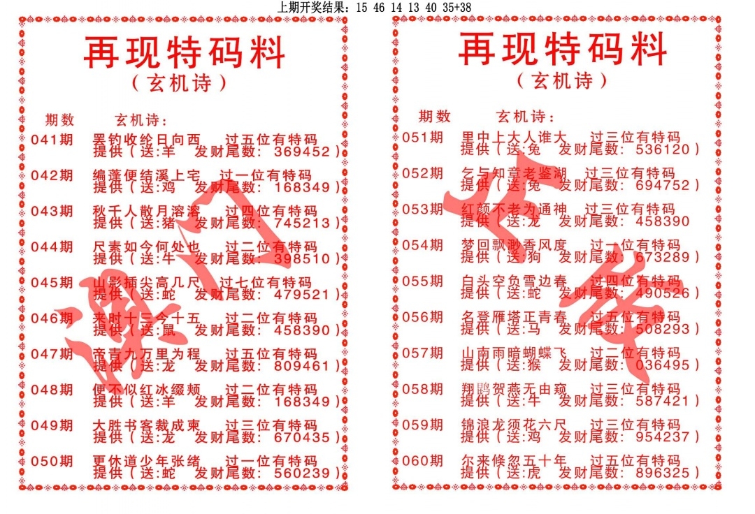 再现特码料